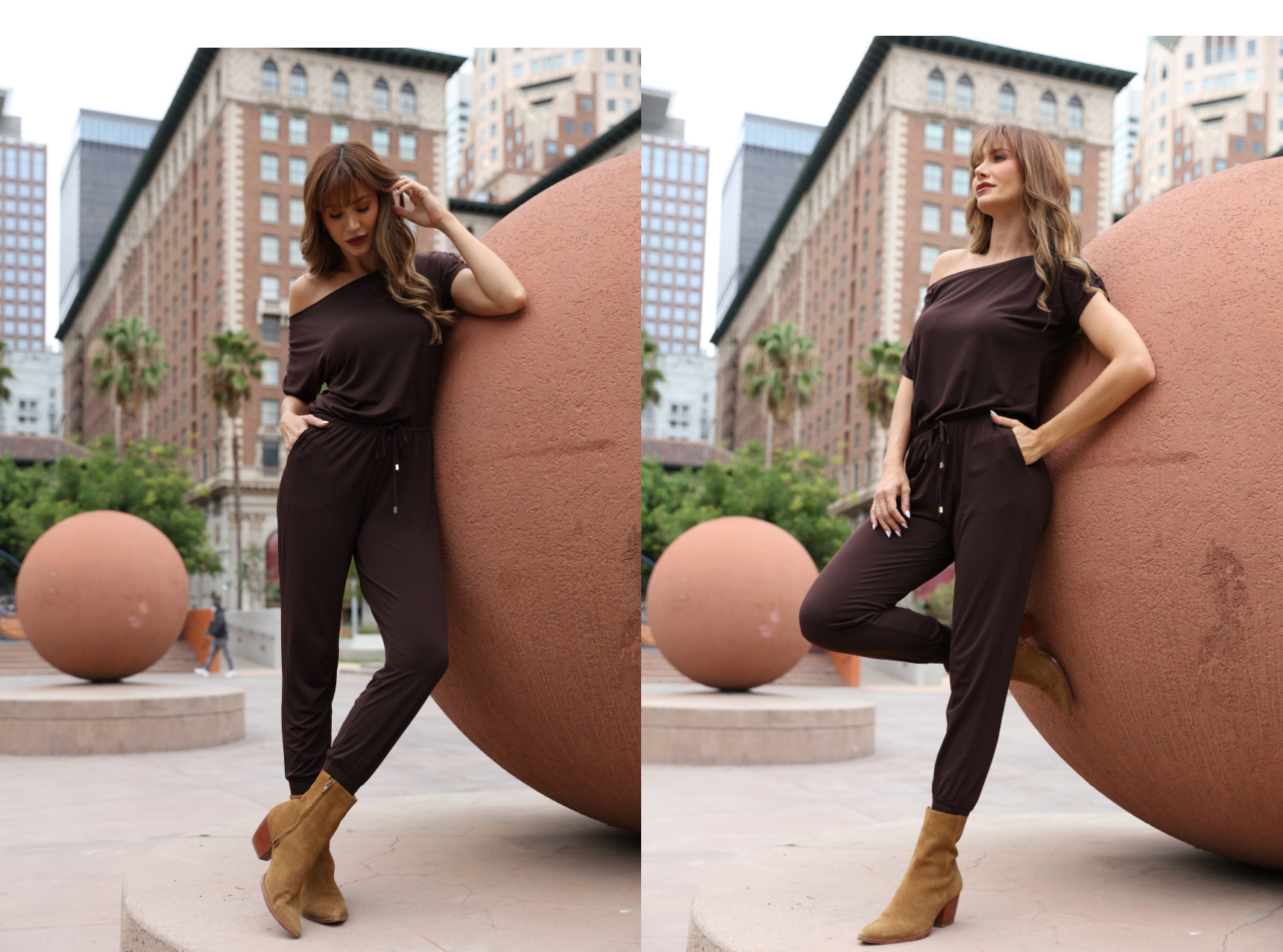 Black Stretch Jogger Jumpsuit - BEST SELLER