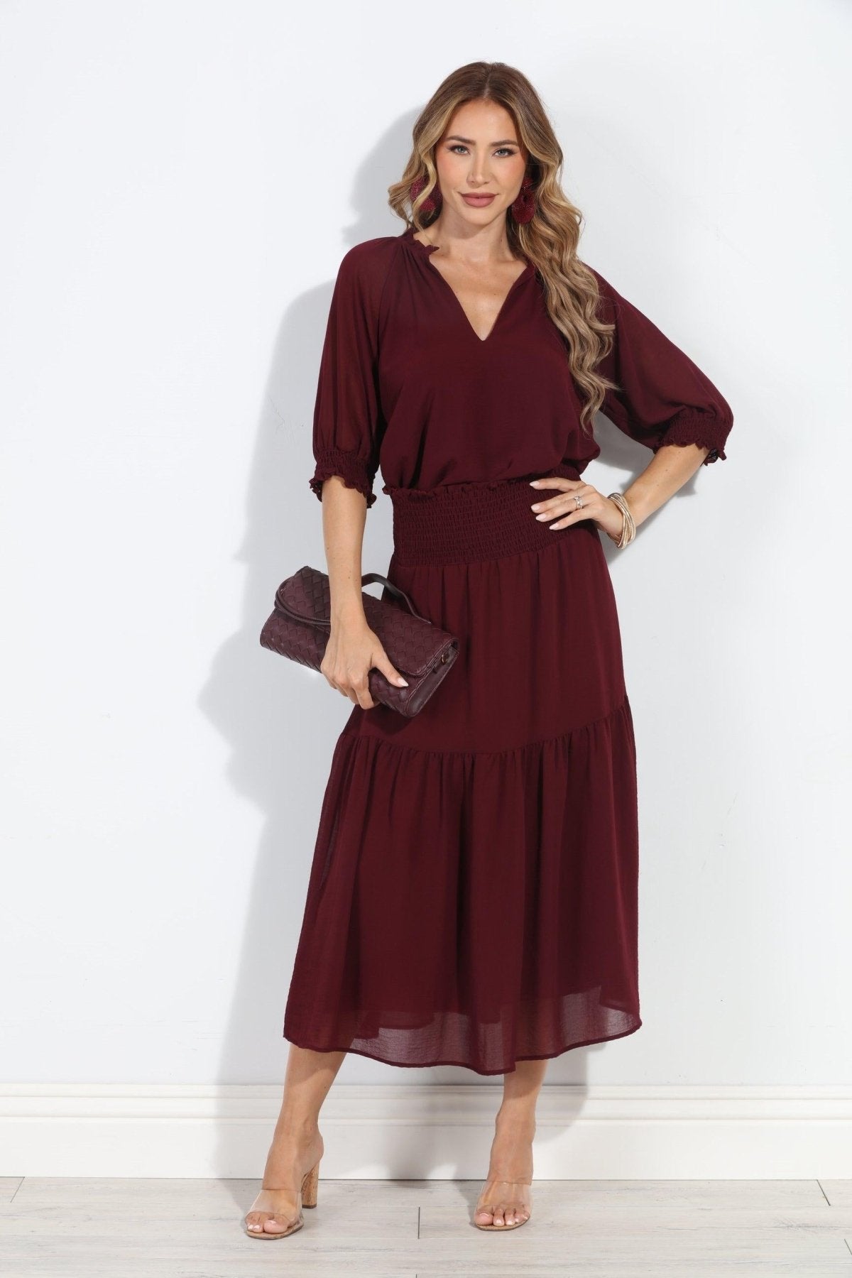 Burgundy Chiffon Ruffle Midi Skirt-BEST SELLER